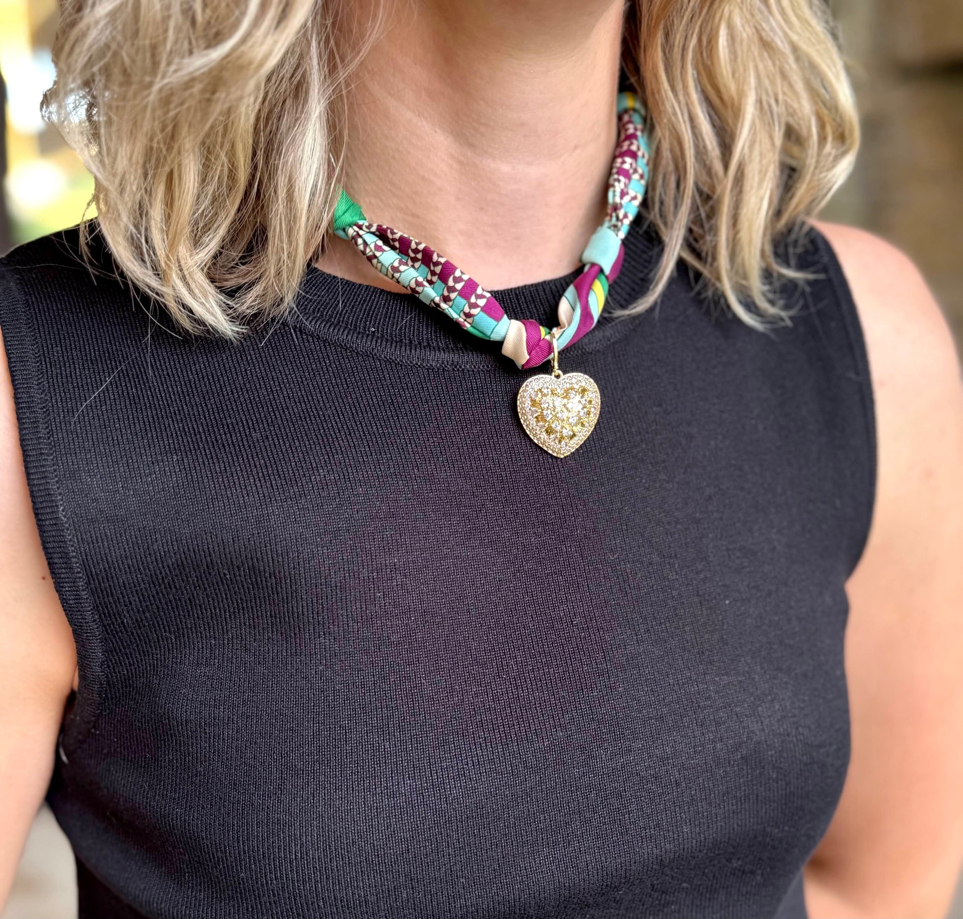 Chic and versatile, the Scarf Necklace is a unique blend of style and sophistication. This adjustable satin scarf necklace features an interchangeable 18k gold-plated charm, allowing you to customize your look effortlessly. Perfect for vacations, rooftop dinners, or adding a fashion-forward touch to any outfit.