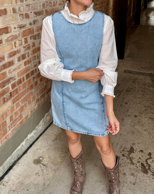 Such a cute dress that you can dress up or go casual. Denim is very soft.